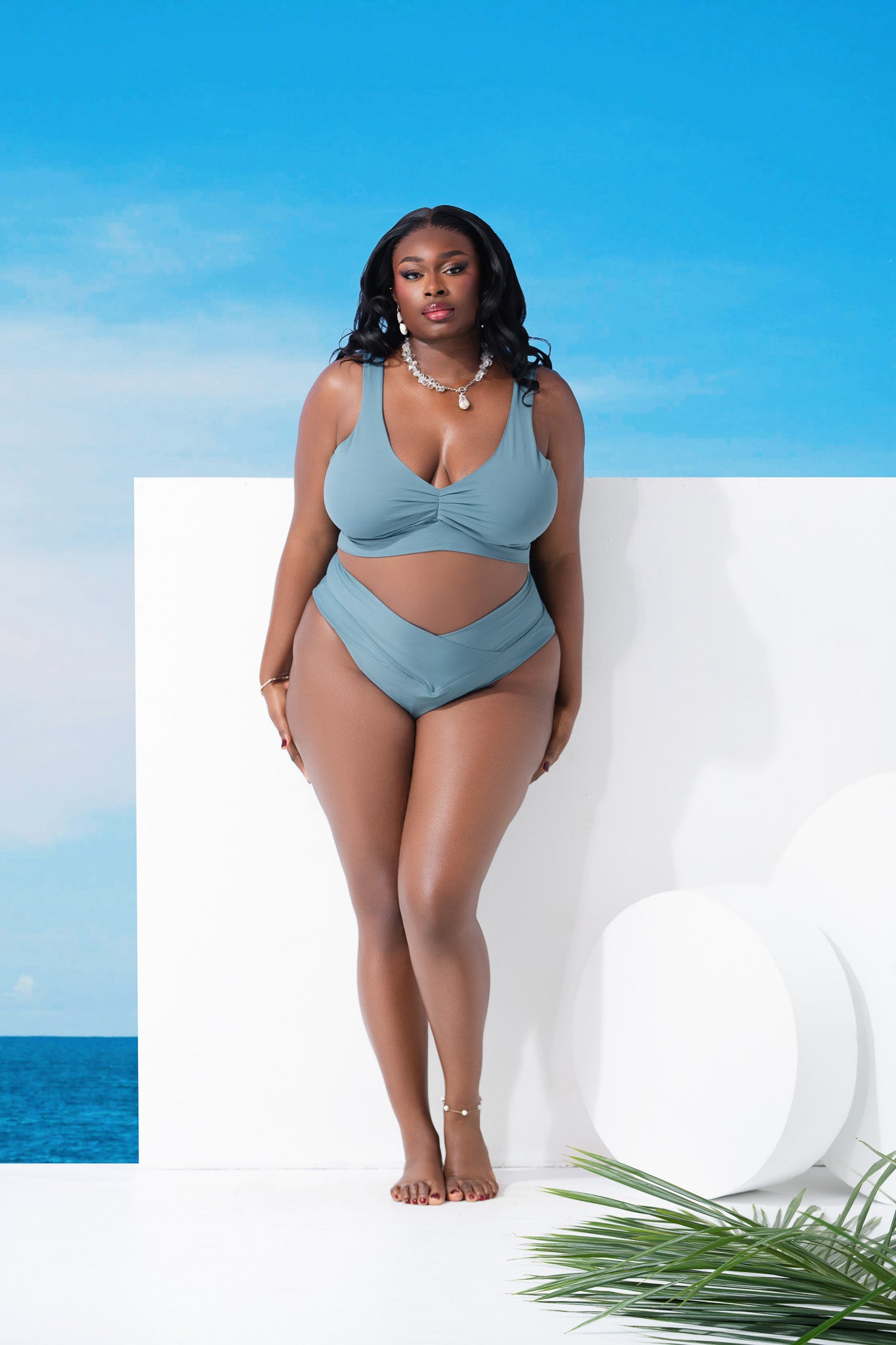 This scrunched bra top and criss-cross pants two-piece luxury swimwear offers a stunning fusion of texture and style. Paired with the matching pants, the design showcases an intricate criss-cross pattern along the sides, enhancing the silhouette with a modern, elegant twist. Made with fade-resistant, chlorine-proof material, this set ensures enduring vibrancy and comfort, making it ideal for luxurious beach escapes or chic poolside events.