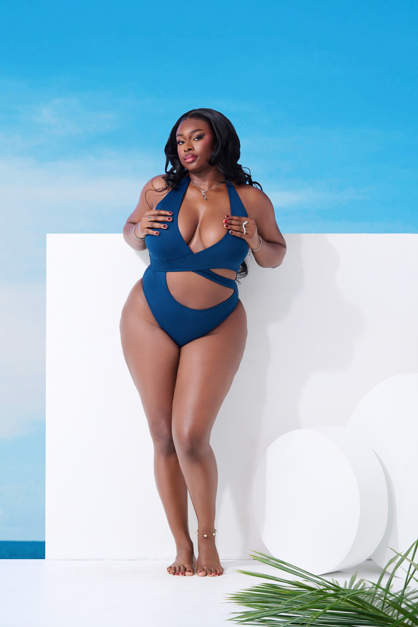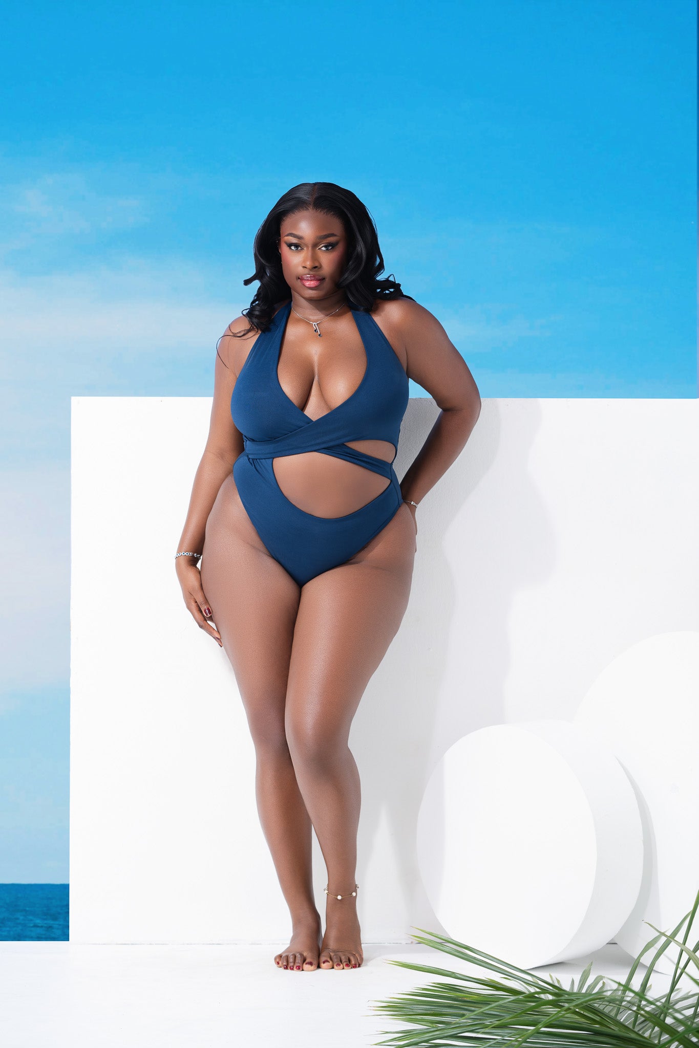 This halter neck Sapphire hue one-piece suit, designed for both style and comfort, offers moderate coverage while enhancing all your features. Its durable, chlorine-resistant material ensures lasting wear, making it an essential addition to your summer wardrobe